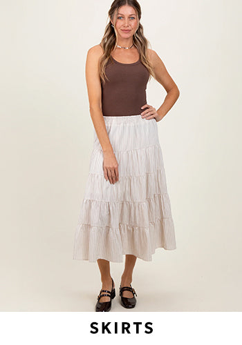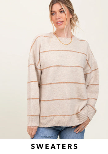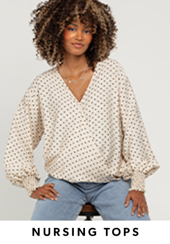 Our maternity clothing is designed to be worn before, during, and after pregnancy! Look for the post-bump tag on our maternity clothes for styles that also flatter postpartum. If baby is here (or near!) our bump-friendly nursing clothes are stylishly at-the-ready whether you're at week ten or past week forty.
