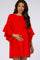 Red Raw Edge Bell Sleeve Babydoll Maternity Dress