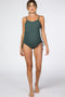 A soild hued, ribbed on piece maternity swimsuit featuring cinched side ties at hips, a square neckline, adjustable straps, ruched sides, removeable padded cups, built in bra, metal buckle clasp, U shaped cutout on back and a double lining. This style runs small.