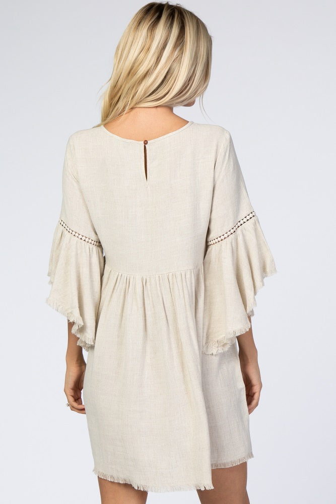 Beige Raw Edge Bell Sleeve Babydoll Dress