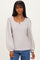Beige Solid Ribbed Long Sleeve V-Neck Tunic Top