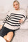 Beige Striped Oversized Side Slit Sweater