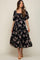 Black Floral Chiffon Ruffle Square Neck Smocked Maternity Midi Dress