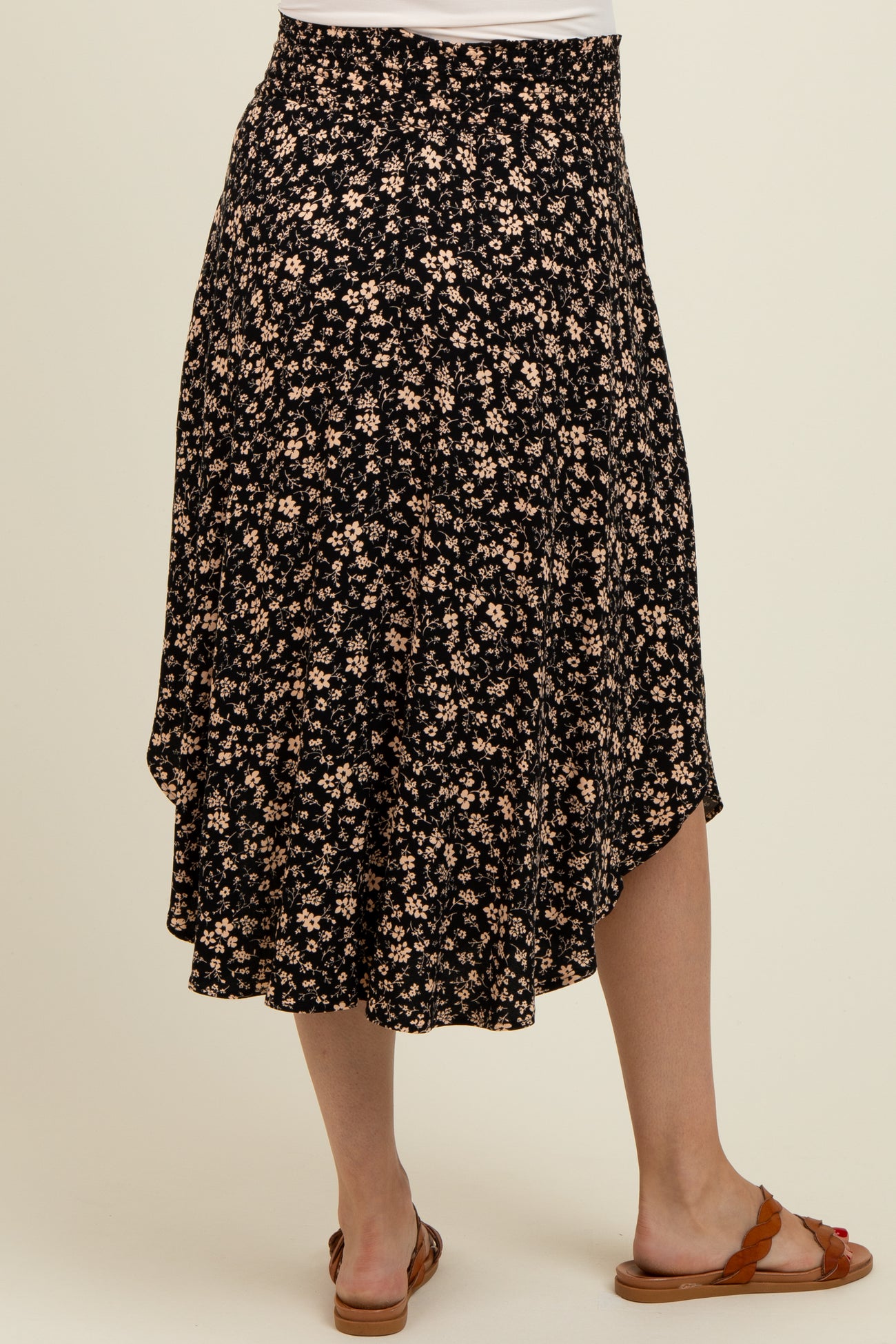 Black Floral Smocked Waist Maternity Skirt