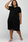 A solid ribbed short sleeve maternity plus dress with scoop neckline and tiered body.