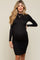 A solid long sleeve fitted maternity dress with a mock neck and side ruching.