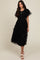 Black Smocked Dotted Tulle Overlay Midi Dress