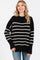 A sweater with a ribbed rounded neckline, long drop shoulder sleeves, and side slits.