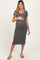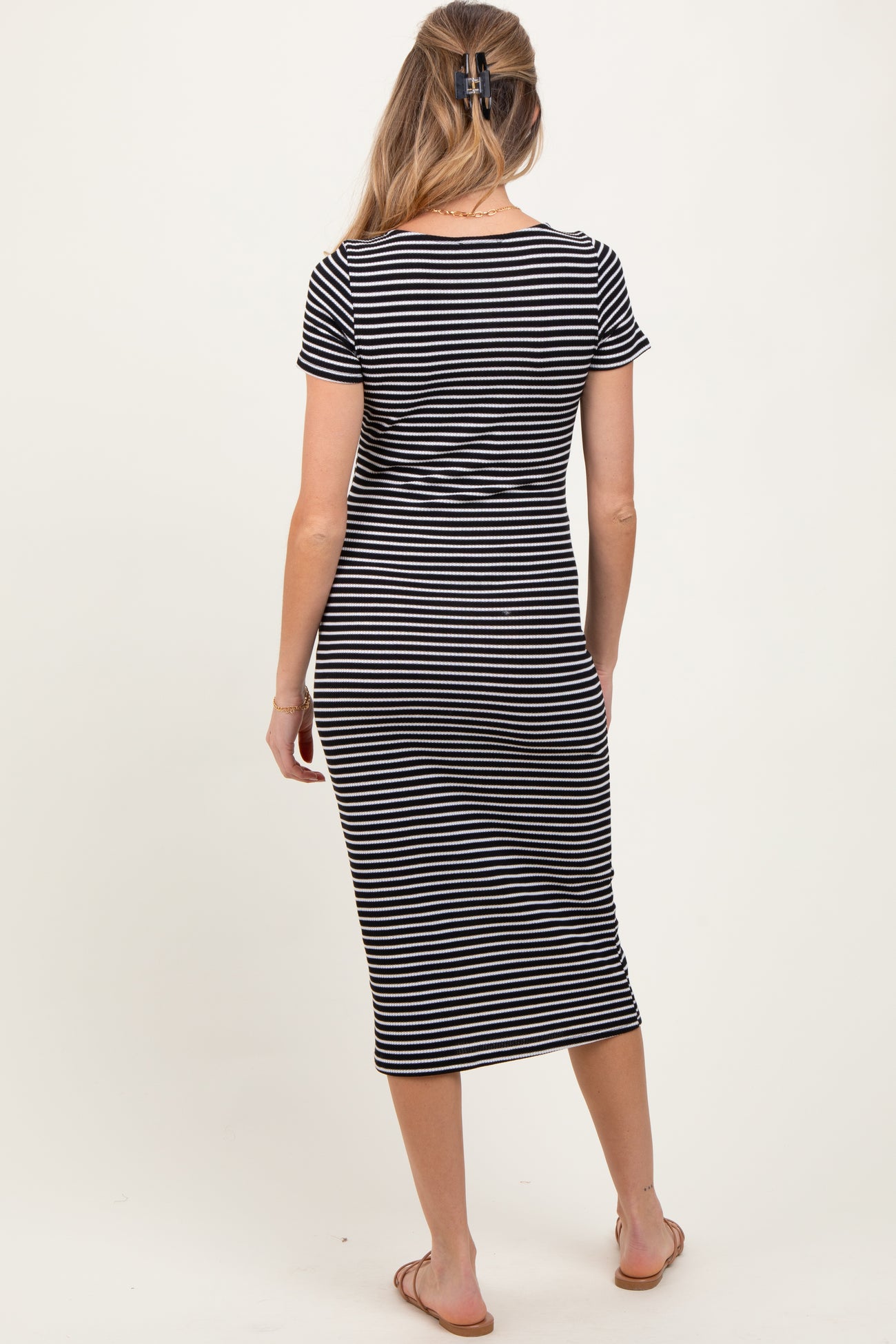 Black White Basic Stripe Rib Short Sleeve Maternity Dress