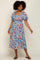 Blue Floral Shimmer Chiffon Ruffle Square Neck Smocked Midi Dress