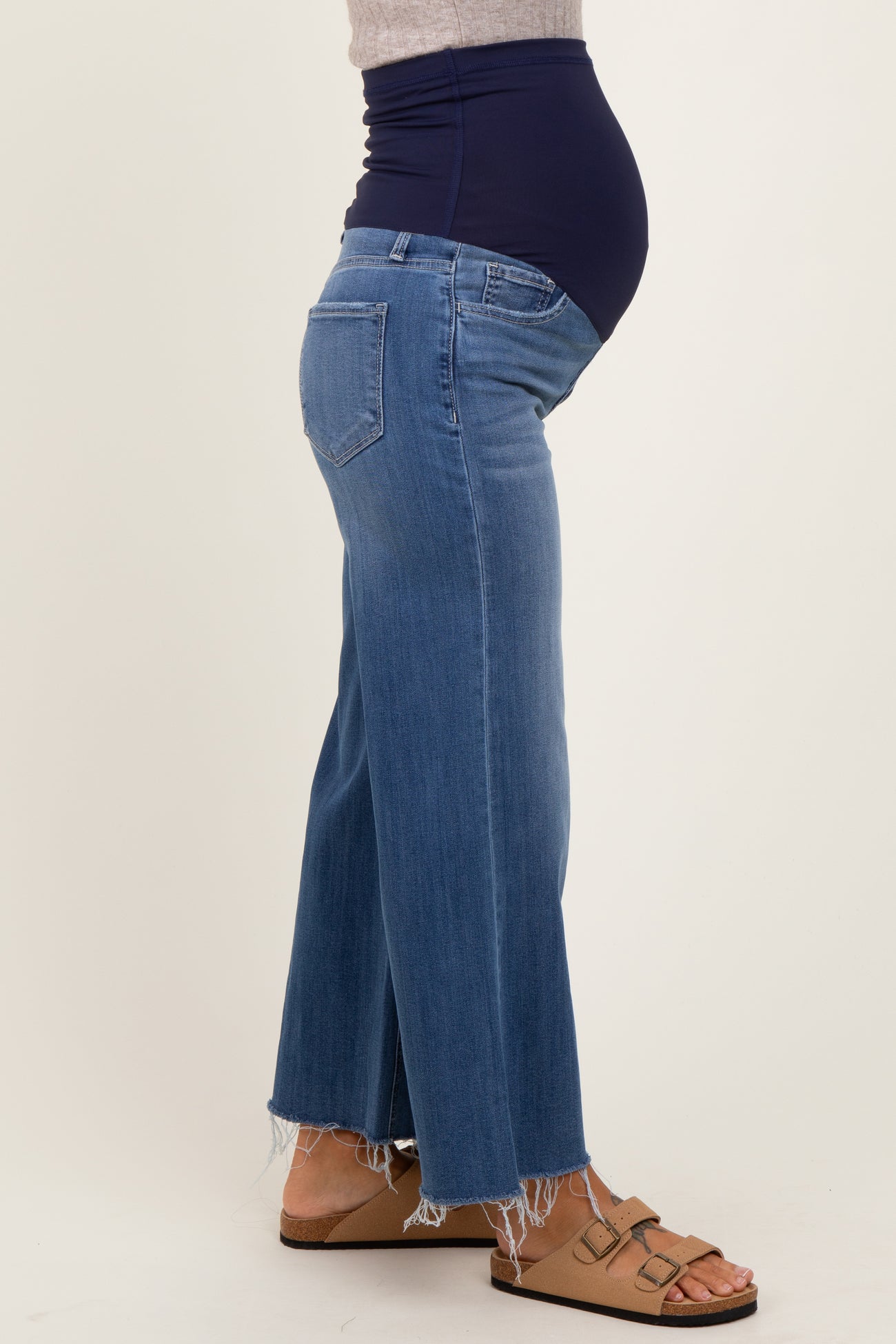 Elevate your maternity style with our Raw Hem Cropped Wide Leg Maternity Jeans! Designed for comfort and versatility, these jeans feature a trendy wide-leg silhouette and a flattering cropped length. The raw hem adds a modern edge, while the stretchy waistband gently supports your growing bump throughout your pregnancy. The classic wash pairs effortlessly with any top, making these jeans an essential for every mom-to-be’s wardrobe. Dress them up with a blouse or keep it casual with a tee—these maternity jeans keep you feeling stylish and comfortable all day long.