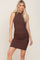 Brown Ribbed Ruched Fitted Dress