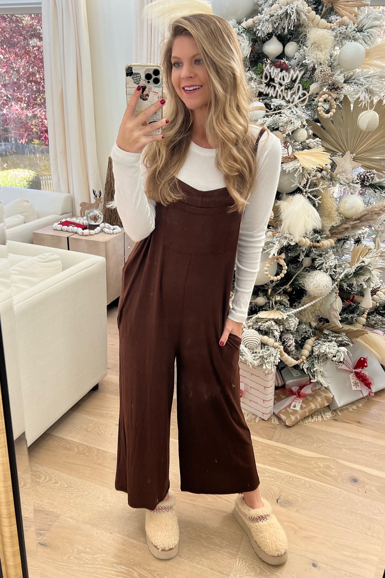 Brown Sleeveless Pocketed Wide Leg Maternity Jumpsuit