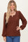 Brown Solid Ribbed Long Sleeve V-Neck Tunic Top