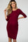 Burgundy 3/4 Sleeves Front Pleated Maternity Dress