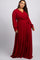 Burgundy Chiffon Long Sleeve Pleated Plus Maxi Dress