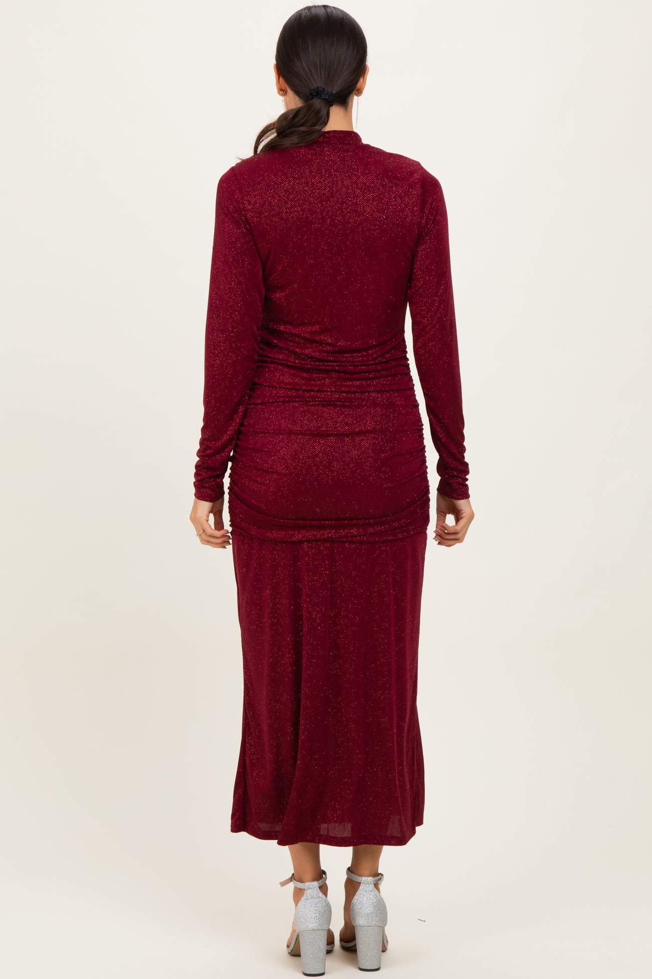 Burgundy Sequin Long Sleeve Mock Neck Maxi Dress