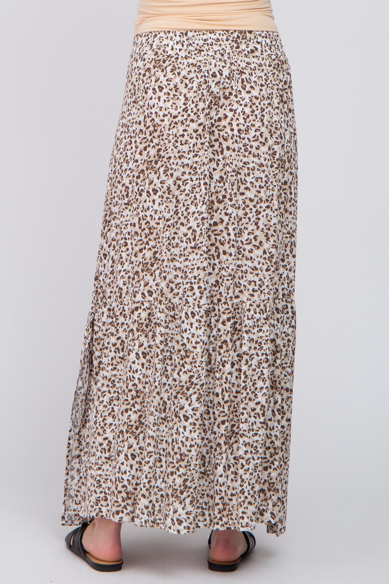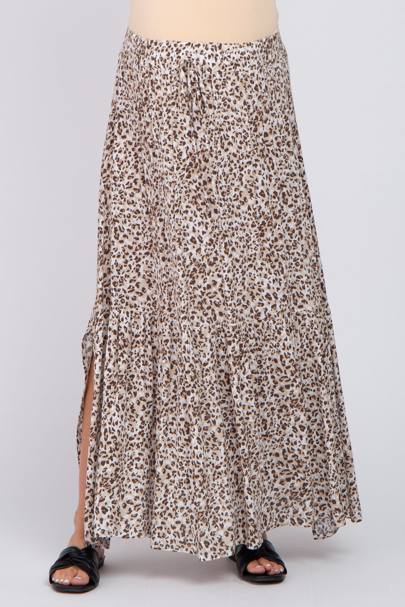Cream Animal Print Tie Front Maternity Maxi Skirt