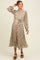 Cream Floral Chiffon Long Sleeve Pleated Maternity Midi Dress
