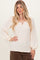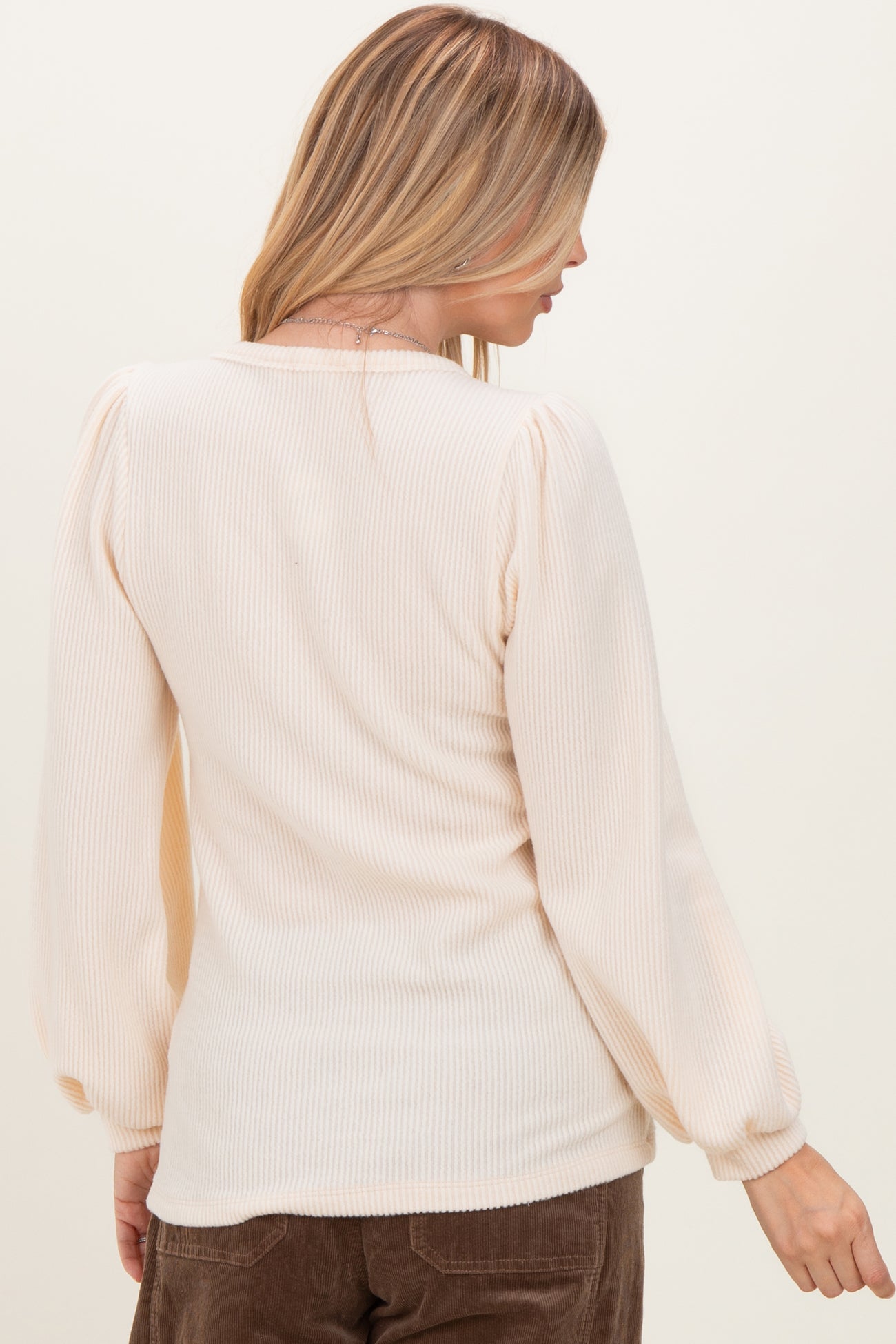 Cream Solid Ribbed Long Sleeve V-Neck Tunic Top