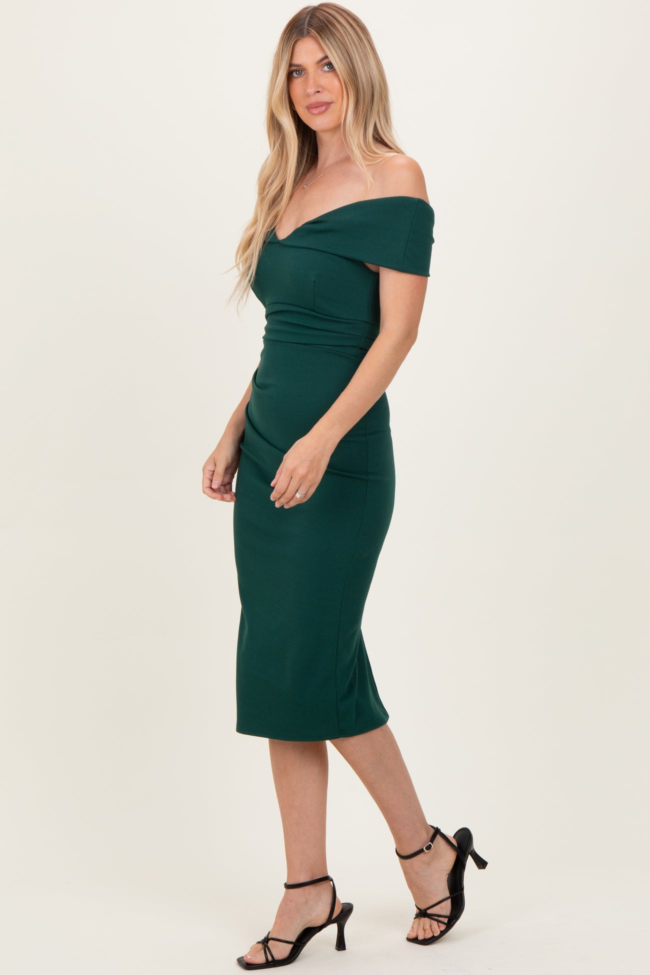 Forest Green Off Shoulder Fitted Midi Dress