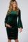 Forest Green Velvet Ruched Bell Sleeve Maternity Dress