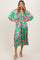 Green Floral Satin Pleated V-Neck Maxi Dress