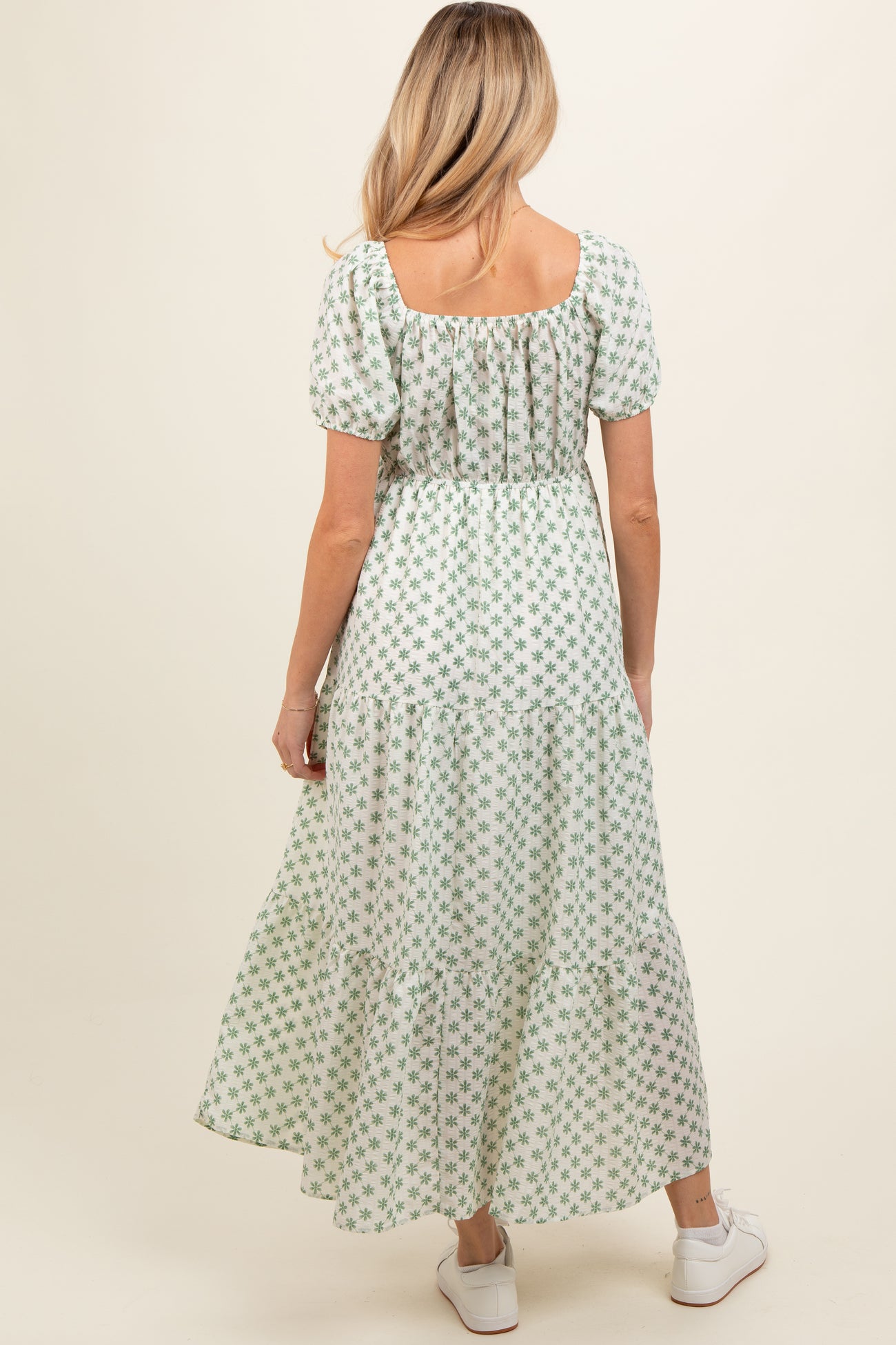 Green Floral Tiered Maternity Maxi Dress