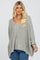 A speckled sweater featuring long drop sleeves, a hi-low hemline, and a v-neckline.