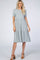 A solid ribbed short sleeve dress with scoop neckline and tiered body.