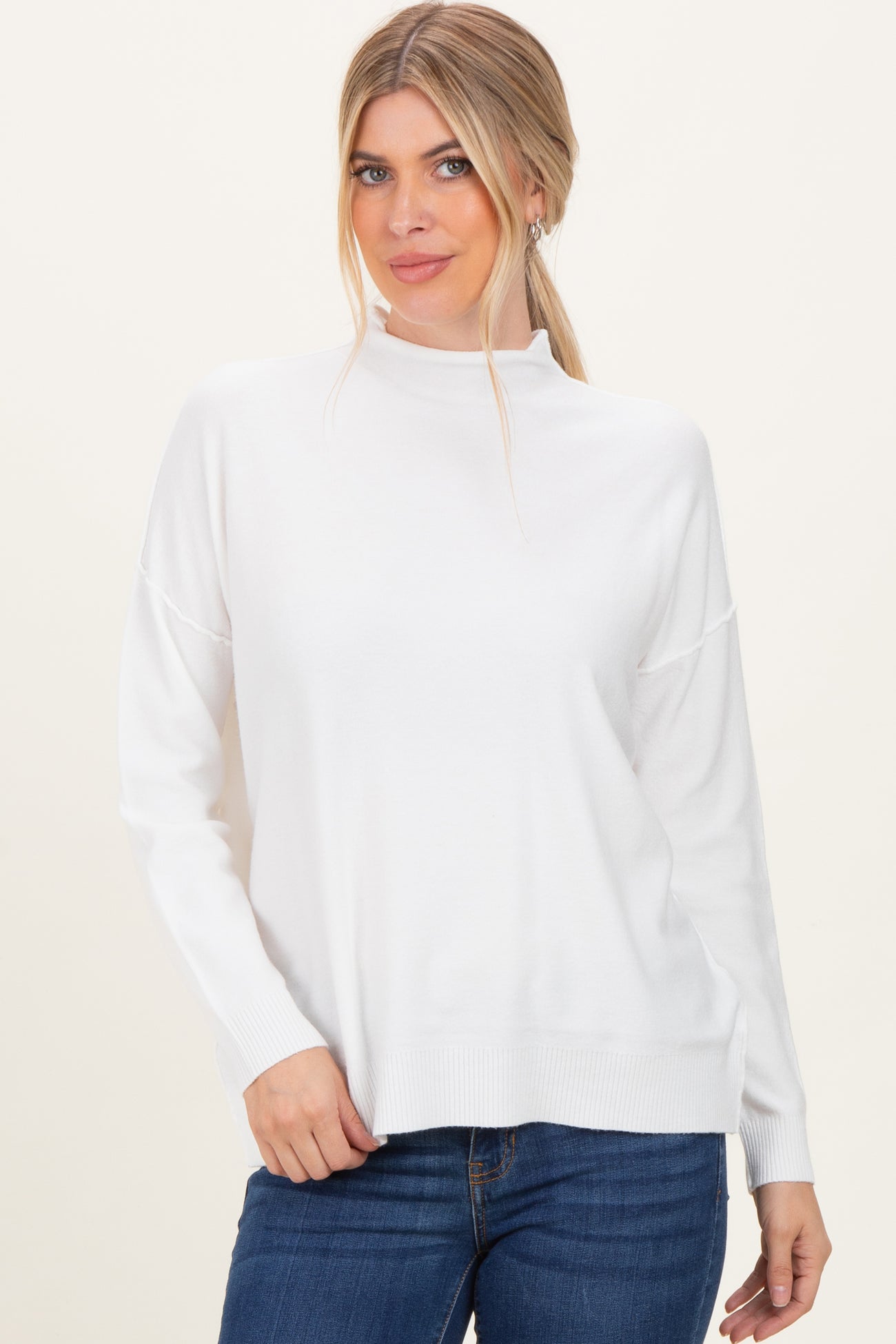 Ivory Mock Neck Exposed Seam Maternity Sweater