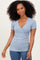 Light Blue Solid Ribbed Short Sleeve V-Neck Basic Top