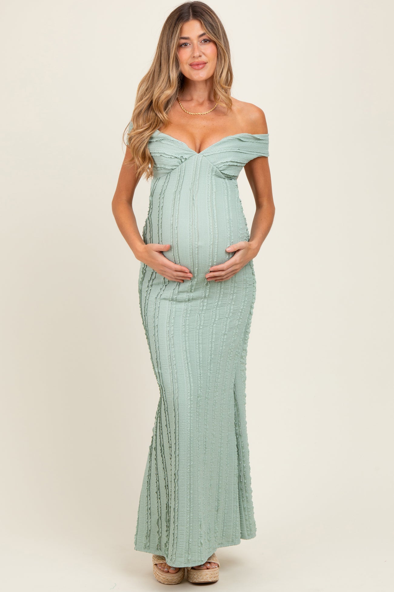 Light Olive Ruffle Texture Convertible Backless Maternity Maxi Dress