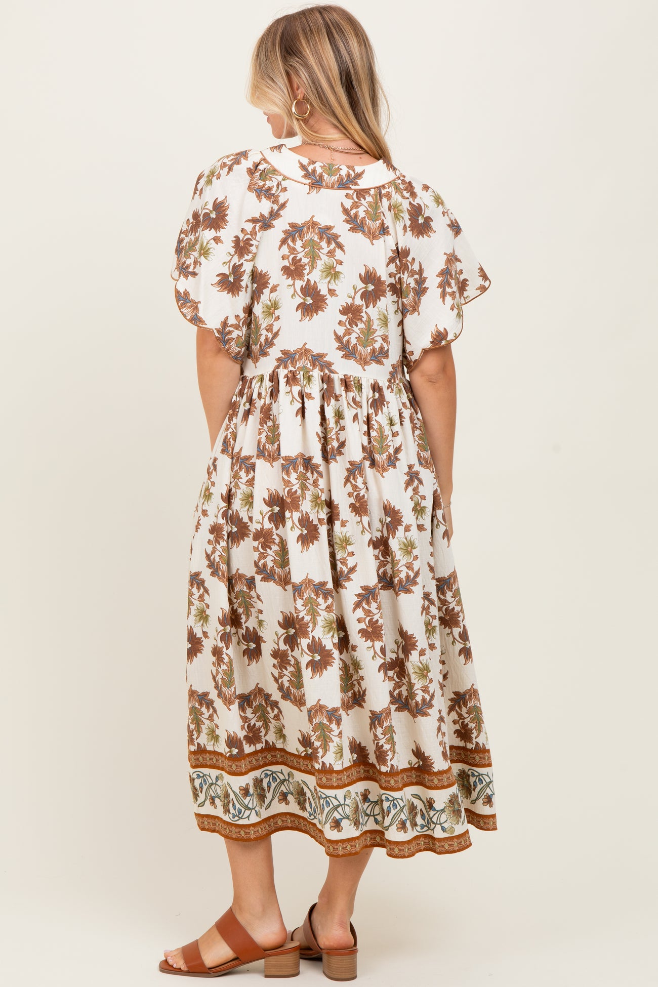 Elevate your wardrobe with our Mocha Floral V-Neck Button Detail Mid Dress. This effortlessly chic dress features a flattering V-neckline and delicate button details down the front, perfect for a touch of rustic charm. Crafted from lightweight, breathable fabric, it's designed to keep you comfortable all day while showcasing a beautiful mocha floral print on a soft cream background. The flutter sleeves add a feminine, breezy feel, and the mid-length hem creates a versatile silhouette ideal for casual outings or brunch dates. Pair with sandals or wedges for a stylish, easygoing look.