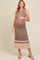 Mocha Knit Button Front Contrast Border Maternity Midi Dress