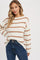 A striped chunky knit sweater with a boat neckline. Can be worn off shoulder.