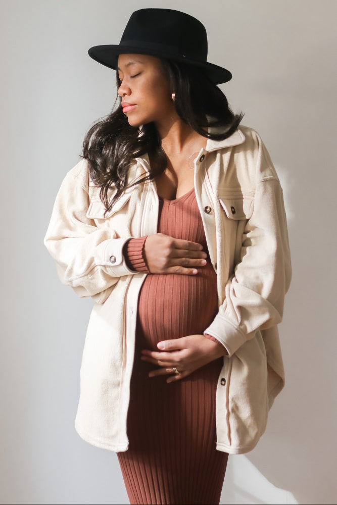 Embrace timeless style and comfort with our V-Neck Long Sleeve Fitted Maternity Maxi Dress. Crafted in a soft, stretchy fabric, this elegant maxi flatters your growing bump while offering a sleek, figure-hugging silhouette. The flattering v-neckline and long sleeves make it perfect for layering through every season, while the versatile hue suits any occasion—from baby showers to casual outings. Effortlessly transition from day to night with this must-have maternity essential. Designed to move with you from pregnancy and beyond, it’s a chic staple your wardrobe will love!