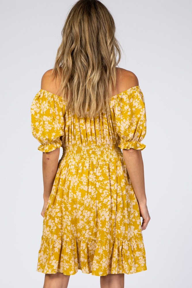 Mustard Floral Off Shoulder Mini Dress