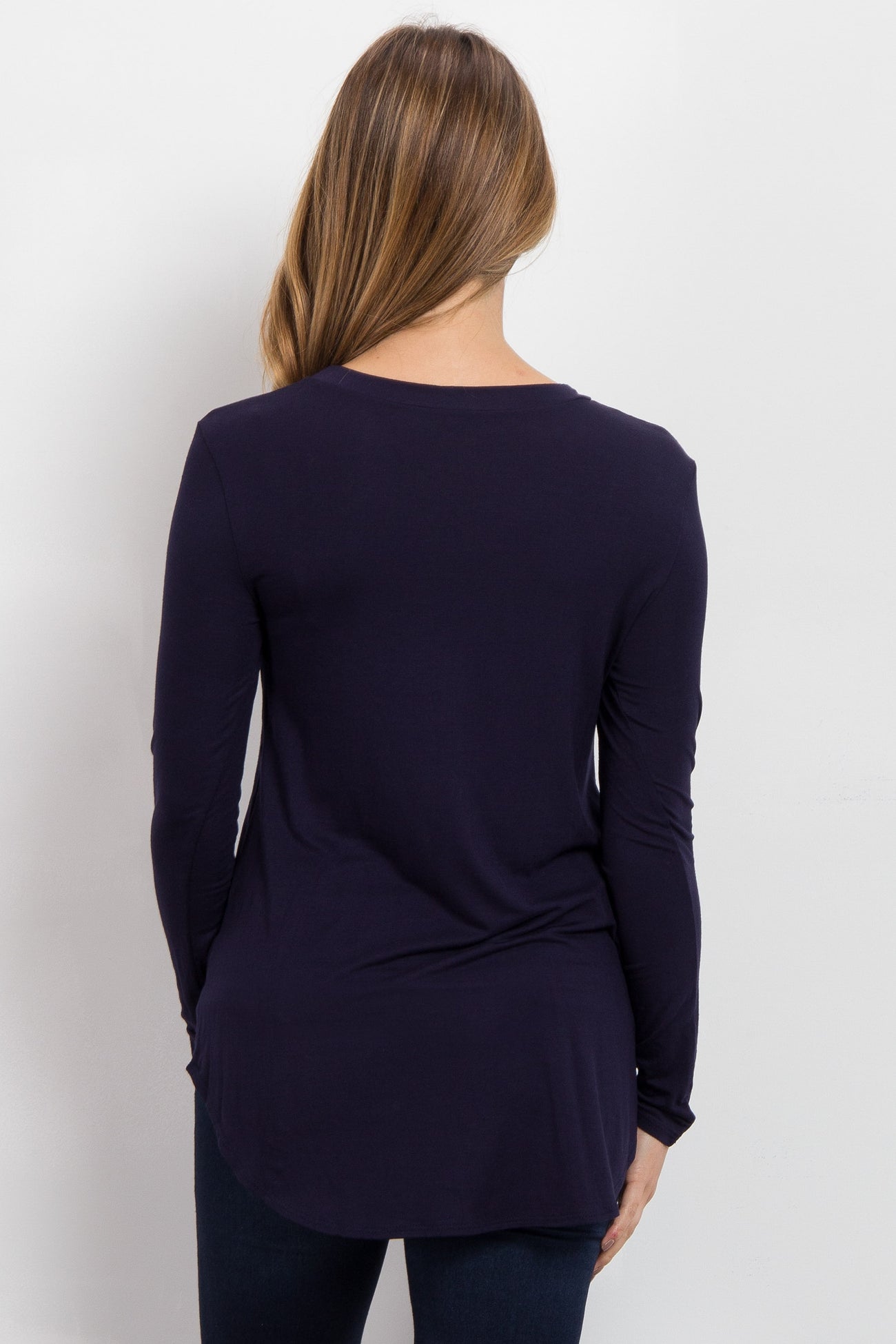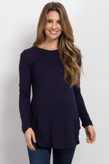 Navy Blue Basic Long Sleeve Maternity Top