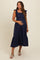 Navy Blue Textured Cotton Ruffle Strap Maternity Midi Dress