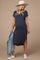 A faded maternity midi dress featuring a raw edge, a curved hem, side slits and a rounded neckline. This style runs big.
