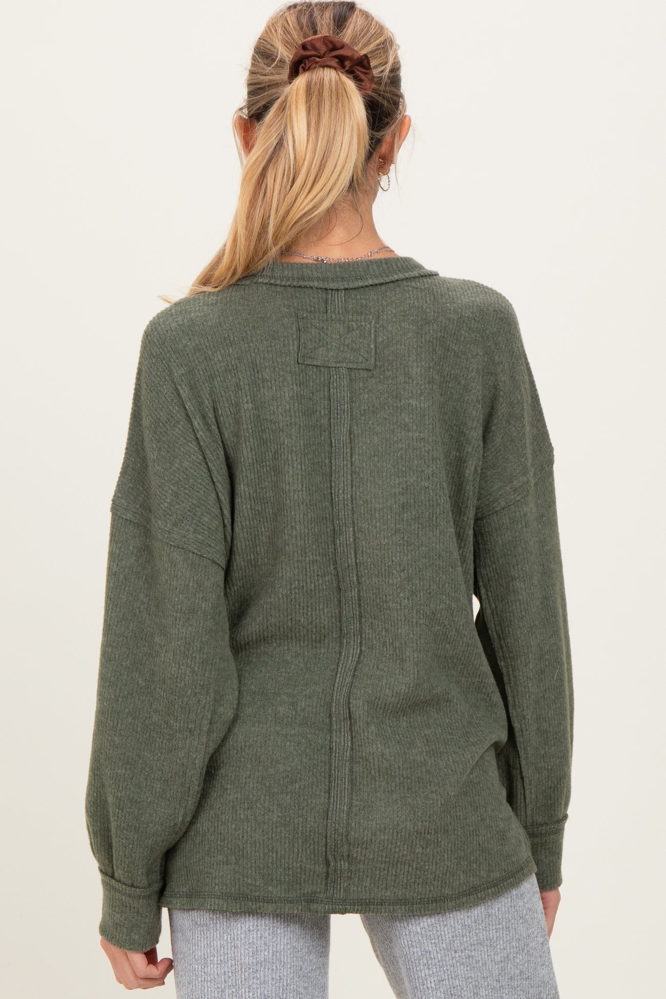 Stay cozy and stylish throughout your pregnancy with our Olive Brushed Ribbed Knit Maternity Pullover. Crafted from ultra-soft, breathable fabric, this pullover offers gentle stretch to accommodate your growing bump comfortably. The ribbed knit texture adds a trendy touch, while the relaxed fit and dropped shoulders ensure easy layering. Perfect for casual days or lounging at home, its versatile olive hue pairs effortlessly with your favorite maternity leggings or jeans. Embrace comfort without compromising on style—your go-to piece for effortless maternity wear this season.