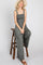 A sleeveless jumpsuit featuring a smocked bust, side pockets, and wide legs.