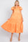 Details A solid short sleeve midi dress. Features collared neckline, puff sleeves, tiered skirt button down front closure. Dress is double lined. Content + Care