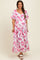 Pink Floral Chiffon Puff Sleeve Maternity Midi Dress