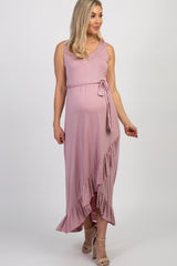 PinkBlush Mauve Sleeveless Hi-Low Ruffle Trim Maternity Maxi Dress
