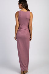 PinkBlush Mauve Solid Sleeveless Fitted Maternity Maxi Dress