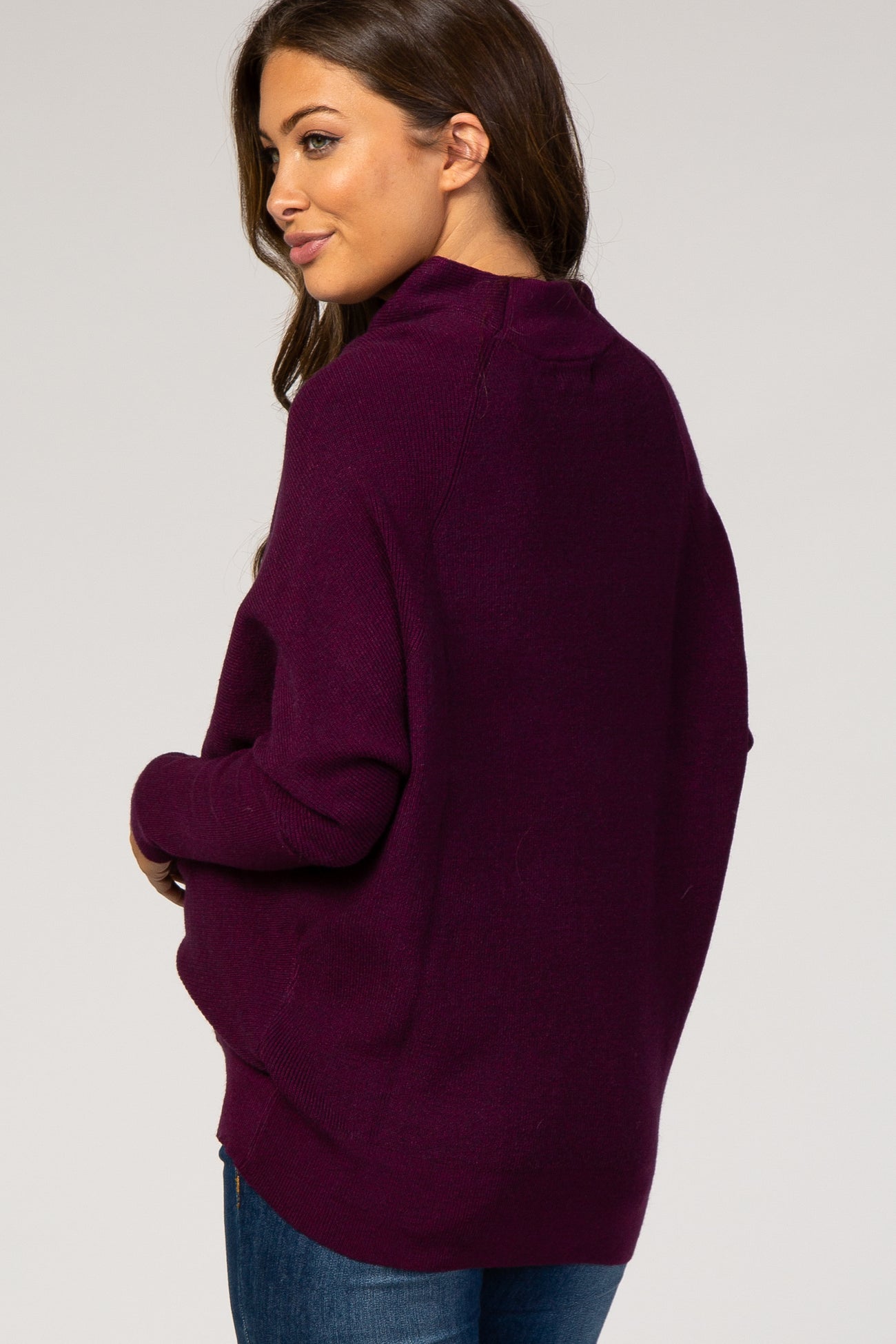 Purple Funnel Neck Dolman Sleeve Maternity Sweater