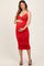 Red Ruched Sweetheart Neckline Maternity Midi Dress