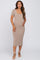A basic fitted midi dress with a rounded neckline and short sleeves.